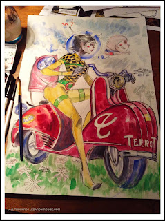 Ce matin, croquis en café-terrasse-soleil façon tournez-manège en compagnie de l'aquarelliste Anne Le Maître s'il vous plaît